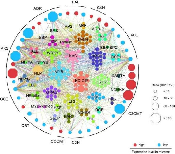 (生姜基因组与特有活性成分姜辣素关键合成基因调控网络图)