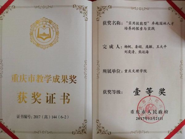 学院始终以培养应用型卓越农业人才为目标,聚焦学生的创新精神和实践能力,坚持党建融合课程思政促进教育教学改革,构筑了“一流+”多元人才培养体系。推动科研课程反哺教学,结合新农科人才培养特点,挖掘思政元素,融入课堂教学内容,多维度构建“三全育人”体系,促进专业建设能力提升。园林专业作为重庆市唯一的园林国家级特色专业、国家“双万计划”省级一流专业,于2022年获批国家级一流专业建设点。承担教育部新农科项目4项、协同育人项目13项,省级教研教改重点项目等13项,获得重庆市教学成果奖一等奖、二等奖各1项,省级一流课程6门,市级高校课程思政示范课程2门;出版专著、教材60多部。近三年,学院本科生在各级各类学科竞赛中获得国际奖项19项、国家级奖27项、省部级奖41项,其中中国国际“互联网+”创新创业大赛全国总决赛金奖1项、银奖1项、铜奖2项;孵化市级以上大学生创新创业训练计划项目30多项,多名大学生创业成功。